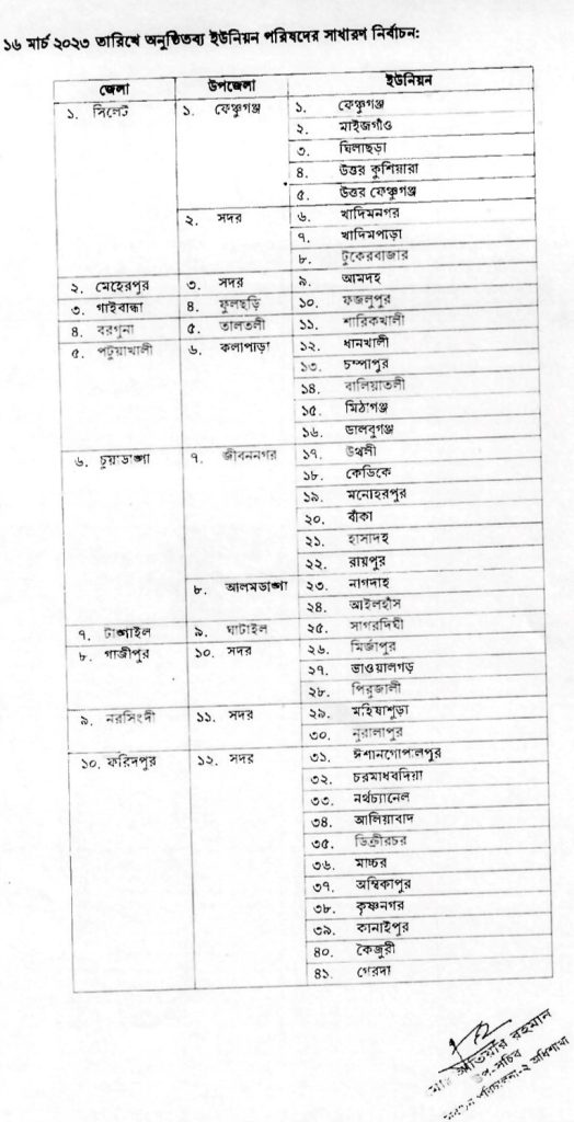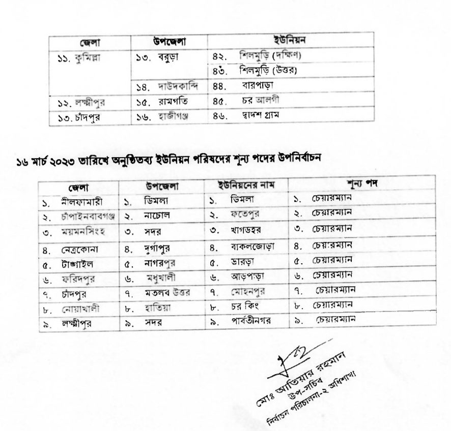 এদিকে আগামী ১৬ মার্চ দেশের বিভিন্ন যায়গায় ৪৬টি ইউনিয়নে সাধারণ নির্বাচন ও ৯টি ইউনিয়নে উপনির্বাচন অনুষ্ঠিত হবে।
