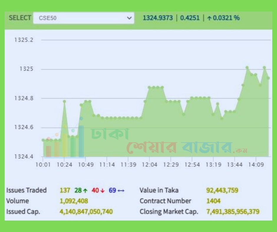 আজ সিএসই তে মোট ১৩৭ টি কোম্পানি ও মিউচ্যুয়াল ফান্ডের শেয়ার লেনদেন হয়েছে। এর মধ্যে দাম বেড়েছে ২৮ টির, কমেছে ৪০ টির এবং অপরিবর্তিত ছিল ৬৯ টি কোম্পানির।