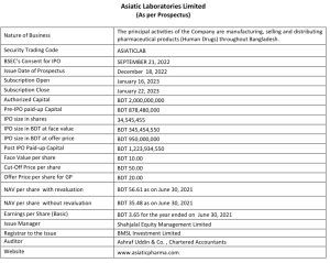 এশিয়াটিক ল্যাবরেটরিজ লিমিটেডের আইপিও আবেদনের তারিখ নির্ধারণ করা হয়েছে।