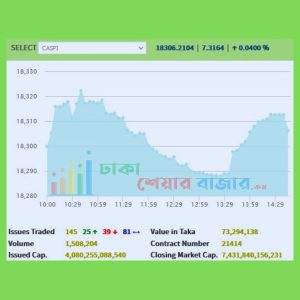 সিএসই সার্বিক সূচক সিএএসপিআই ৭.৩১ পয়েন্ট বেড়ে  সূচক অবস্থান করছে ১৮৩০৬.২১ পয়েন্টে।