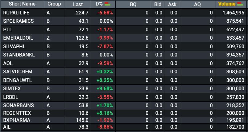 আজকের ব্লক মার্কেটে ভলিউমের দিক দিয়ে সবচেয়ে বেশি লেনদেন হয়েছে রুপালী লাইফ ইন্সুইরেন্সের, লেনদেন হয়েছে ৩১৪.৬৪ লাখ শেয়ারের। এর পরেই বেশি লেনদেন হয়েছে শাইন পুকুর সিরামিকের ৮.৭৫ লাখ, প্যারামাউন্ট টেক্সটাইলের লেনদেন হয়েছে ৬.২২ লাখ, এমারেল্ড অয়েলের লেনদেন হয়েছে ৫.৩৩ লাখ ও সিলভা ফার্মার লেনদেন হয়েছে লেনদেন হয়েছে ৫.০৯ লাখ শেয়ারের।
