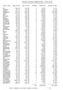 গতকাল ব্লকে মোট ৬১ টি কোম্পানির ট্রেড হয়েছে ৫৪.৩৩ কোটি টাকা। আজ ব্লকে গত দিনের চেয়ে লেনদেন বেশি  হয়েছে২৬.৮৫ কোটি টাকা।