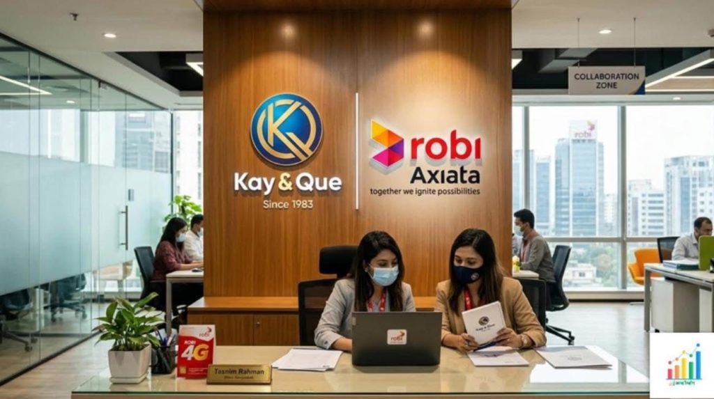 শেয়ারবাজারে তালিকাভুক্ত কোম্পানি ক্যায় অ্যান্ড কিউ (বাংলাদেশ) লিমিটেড (KAY&QUE) এবং দেশের অন্যতম শীর্ষ মোবাইল অপারেটর রবি আজিয়াটা পিএলসি-এর মধ্যে একটি গুরুত্বপূর্ণ ব্যবসায়িক চুক্তি স্বাক্ষরিত হয়েছে। এই চুক্তির ফলে কোম্পানিটির ব্যবসায়িক পরিধি বৃদ্ধি এবং রাজস্ব আদায়ে ইতিবাচক প্রভাব পড়বে বলে আশা করা হচ্ছে।
