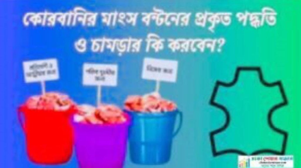 অর্থাৎ, দুর্দশা-অনটনের বছরে অভাবীদের ভেতর কোরবানির মাংস বিলানোর নির্দেশ থাকলেও, অন্যান্য বছরগুলোতে দান করার সুস্পষ্ট হুকুম দেননি নবী। কেউ যদি ইচ্ছা করে তবে দান করতে পারে। কিন্তু এ বিষয়ে কোন বাধ্য বাধকতা নেই। সঠিক মত এই যে, কোন আয়াত বা সহীহ হাদীসে এরূপ ভাগাভাগি করতেই হবে এমনটি প্রমাণ পাওয়া যায় না, তাই কেউ যদি ভাগ নাও করে তাতে সে গুনাহগার হবে না। মূলত দেখা হবে তার অন্তরে কী ছিল। তাই আমাদেরকে প্রথমত আমাদের নিয়ত ঠিক করা একান্ত কর্তব্য, তা না হলে কোন আমলই গ্রহণযোগ্য হবে না।