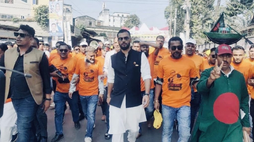 খেলা ছেড়ে এখন তিনি পুরোদস্তুর রাজনৈতিক নেতা হয়ে উঠছেন।নড়াইল-২ আসনের নেতা-কর্মীদের সঙ্গে নিয়ে জনসভাস্থলে এসেছেন বাংলাদেশ ক্রিকেট দলের সাবেক এই অধিনায়ক।