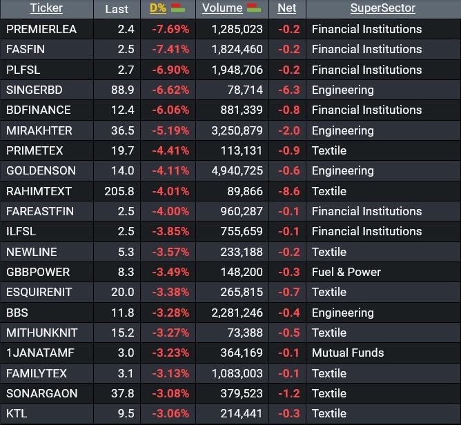 অন্যদিকে, আর্থিক প্রতিষ্ঠান এবং বস্ত্র খাতের শেয়ারগুলোতে বিক্রির চাপ বেশি লক্ষ্যকরা গেছে।