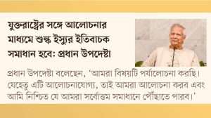 যুক্তরাষ্ট্র সরকারের সঙ্গে আলোচনার মাধ্যমে শুল্ক ইস্যু সমাধানে ইতিবাচক অগ্রগতি হবে বলে দৃঢ় আশা প্রকাশ