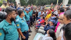 প্রতিবন্ধীদের পদযাত্রায় মাইক কেড়েছে পুলিশ ও বাধার অভিযোগ, শাহবাগে অবস্থান