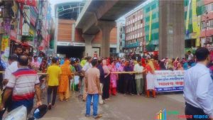রাজধানীর মিরপুরের শেওড়াপাড়া এলাকায় জে কে ফ্যাশন নামে একটি পোশাক কারখানার শ্রমিকরা সড়ক অবরোধ করেছেন।