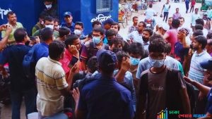 বকেয়া বেতন ও বোনাসের দাবিতে গাজীপুর জেলা প্রশাসক আবুল ফাতে মোহাম্মদ সফিকুল ইসলামের কার্যালয়ের সামনে