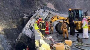 সৌদি আরবের দক্ষিণ-পশ্চিমাঞ্চলীয় আসির প্রদেশে যাত্রীবাহী বাস দুর্ঘটনায় অন্তত ২০ ওমরাহ যাত্রী নিহত হয়েছেন। এ